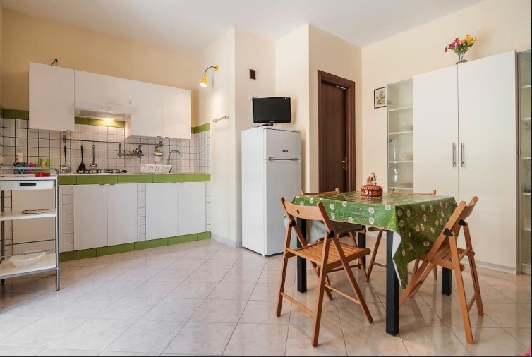 L'appartamento è composto al piano terra da un open space livin con cucina, divano letto e bagno. Le camere, una camera matrimoniale, camera singola e un secondo bagno.